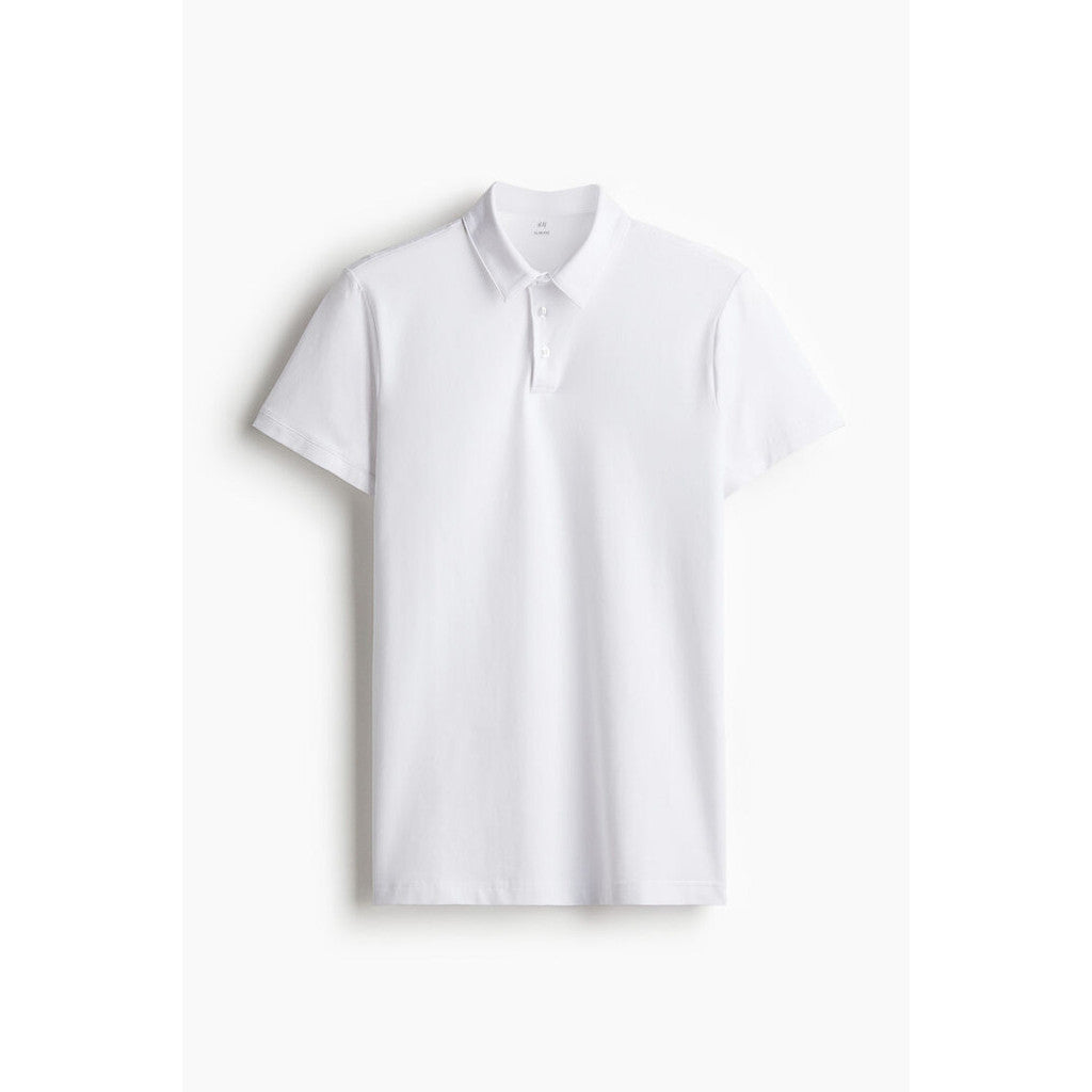 Polo shirt in lightweight cotton jersey with a collar, button placket, short sleeves and a straight-cut hem. Slim fit that...