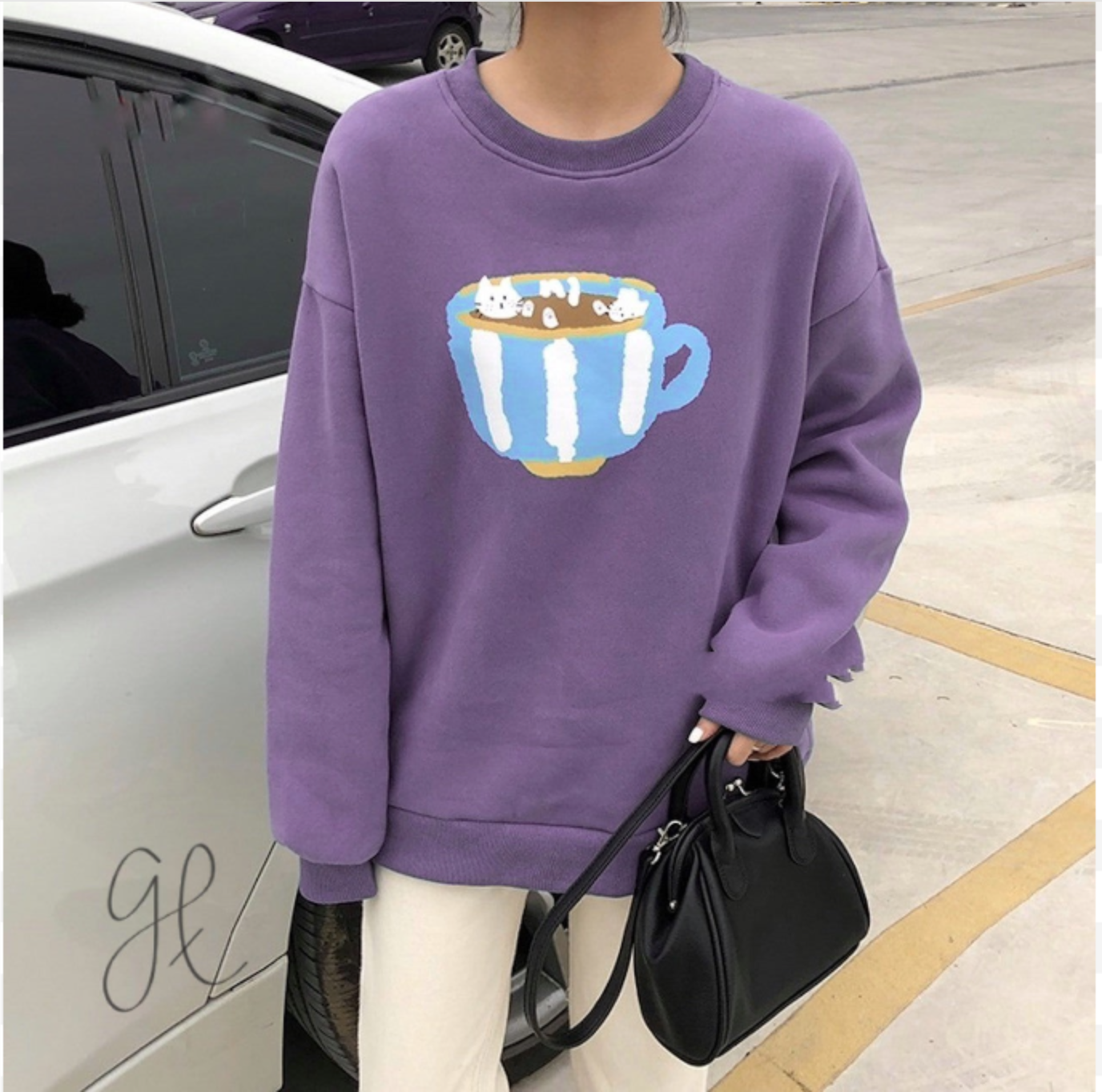 Basic Sweater Cup Tea Kitty Korean Unisex