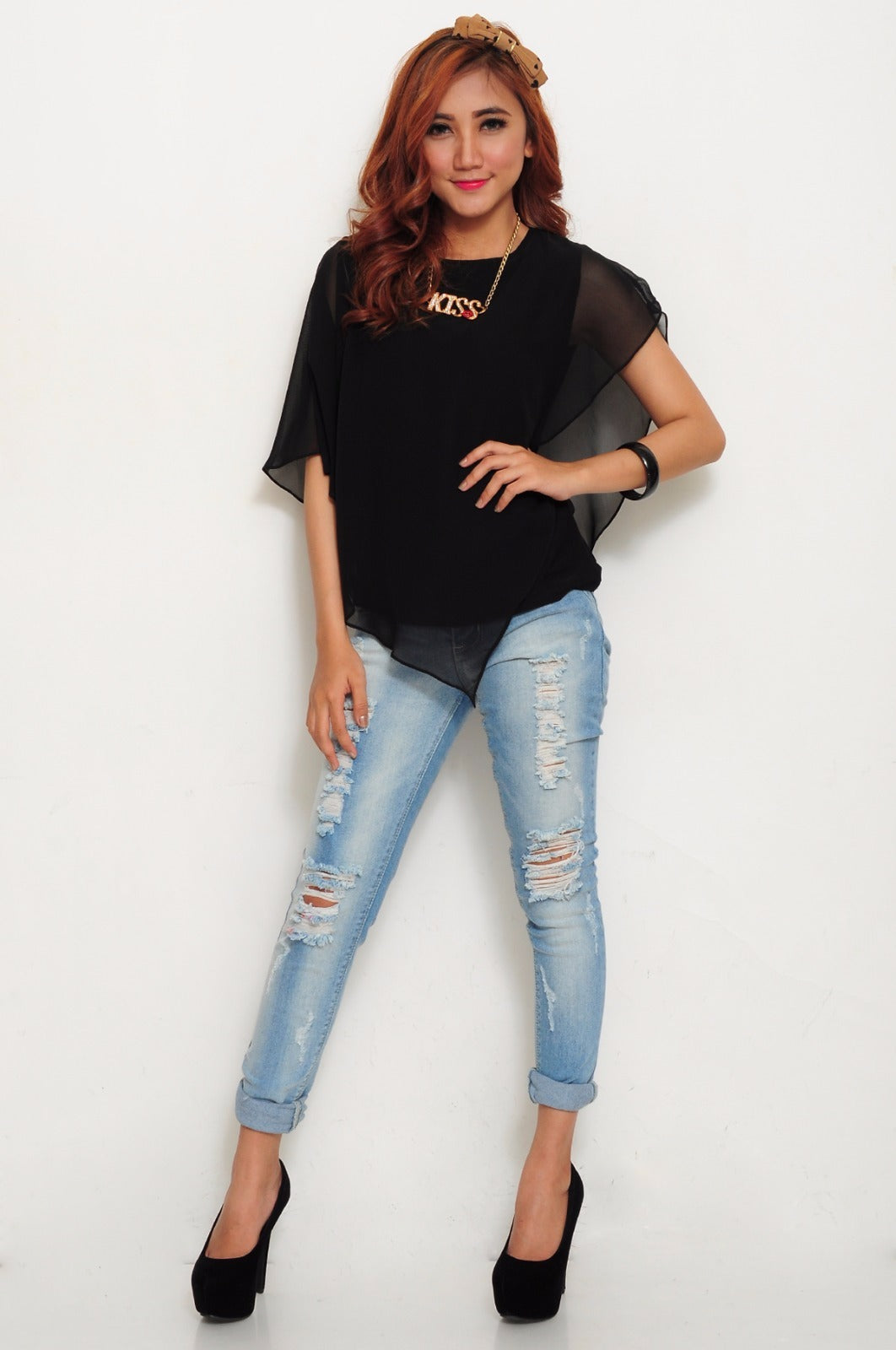 Blouse Sifon Kombinasi Spandek Model Sayap