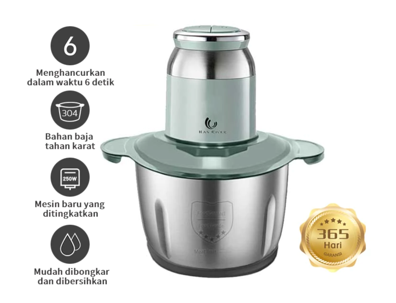 Deskripsi: 1. Mesin Penggiling HAN RIVER menggunakan mata pisau yang tajam memudahkan kita mengelolah makanan/daging lebih halus....
