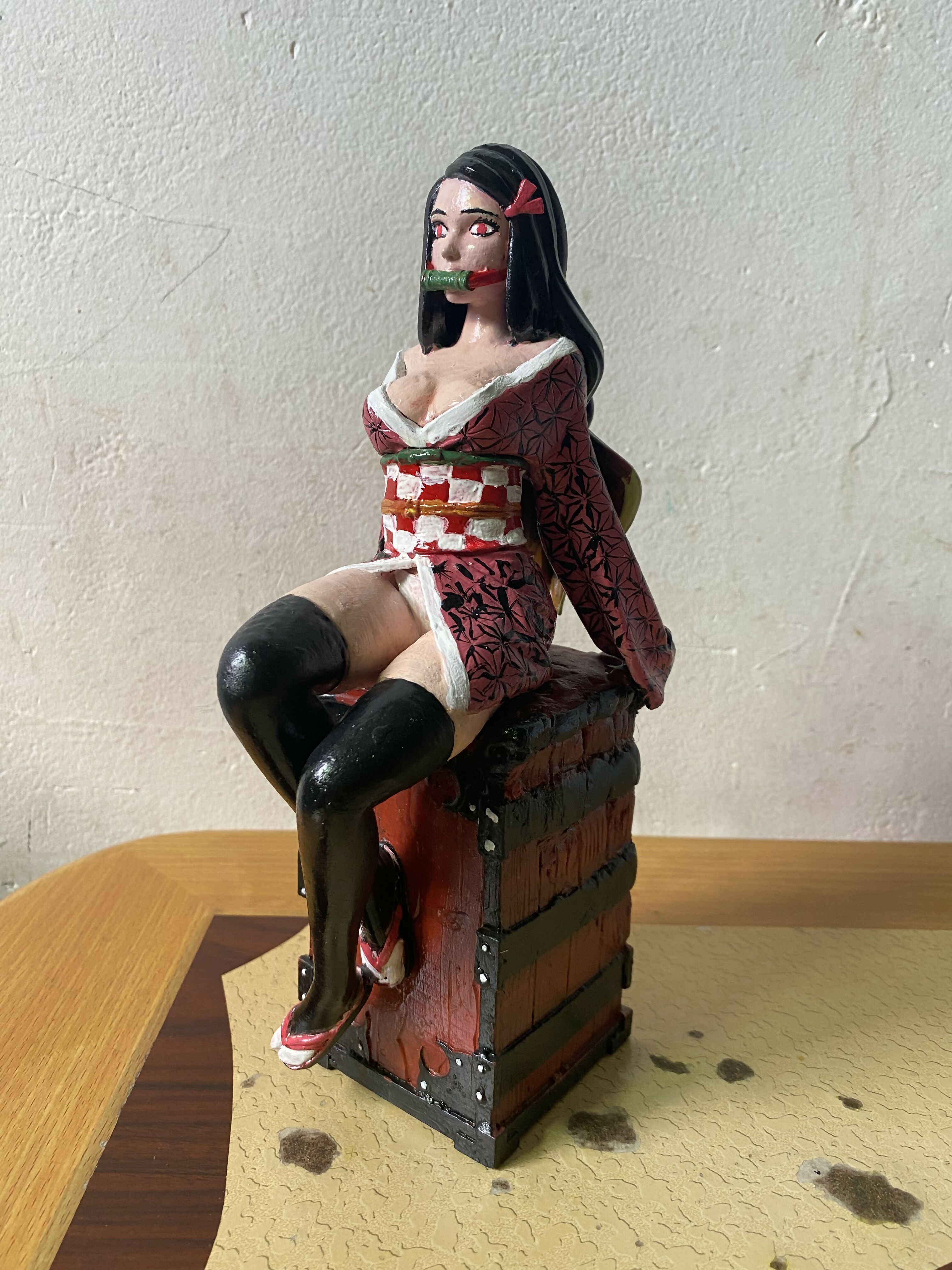 Nezuko from Demon Slayer popular anime. Halo husi resin, skala 1:6, furak tebes hodo infeita uma ka meja serbisu
