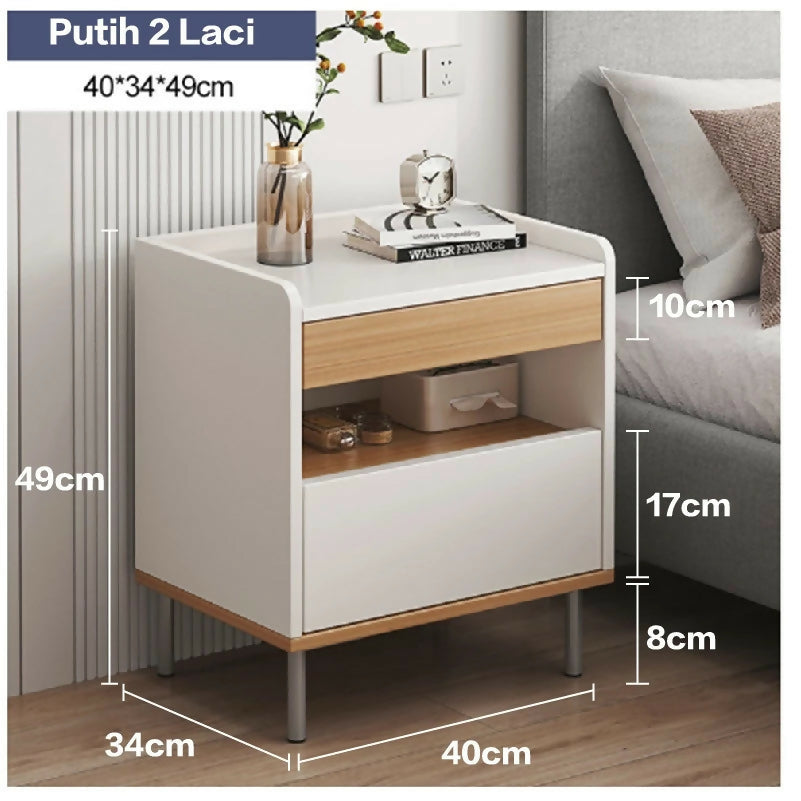 Damaindah Meja Nakas / Meja Bedside/Meja Nakas Minimalis/Meja Samping/BEDSIDE TABLE/Lemari Nakas Dua Laci/Minimalis/Modern/Murah