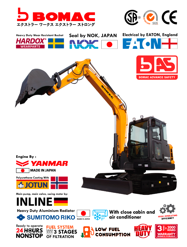 BOMAC Heavy Duty Excavator with YANMAR Engine, JAPAN • Model : BE62-9E-CTSKU : DHE-13083• Operating weight : 6.2 T• Bucket...