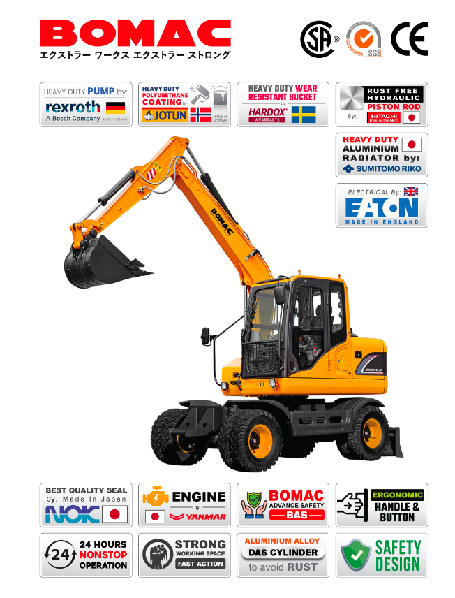 BOMAC Heavy Duty Wheel Excavator with YANMAR Engine, JAPAN • Model : BE69W-B SKU : DHE-20737• Operation Weight : 6900kg•...