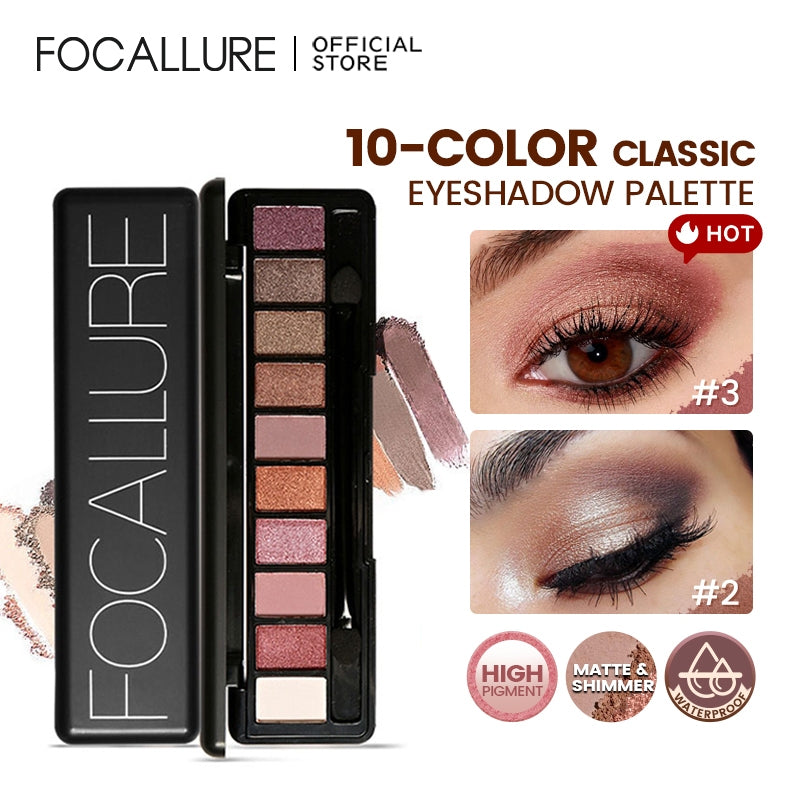 FOCALLURE 10 Warna Eyeshadow Palette Nude eye shadow with Brush
