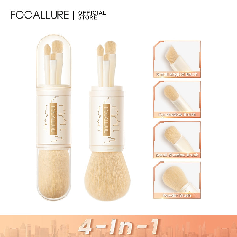 FOCALLURE #ModernUrban 4-In-1 Makeup Brush Set 4pcs Portable Telescopic Traveling Makeup Brush Kit