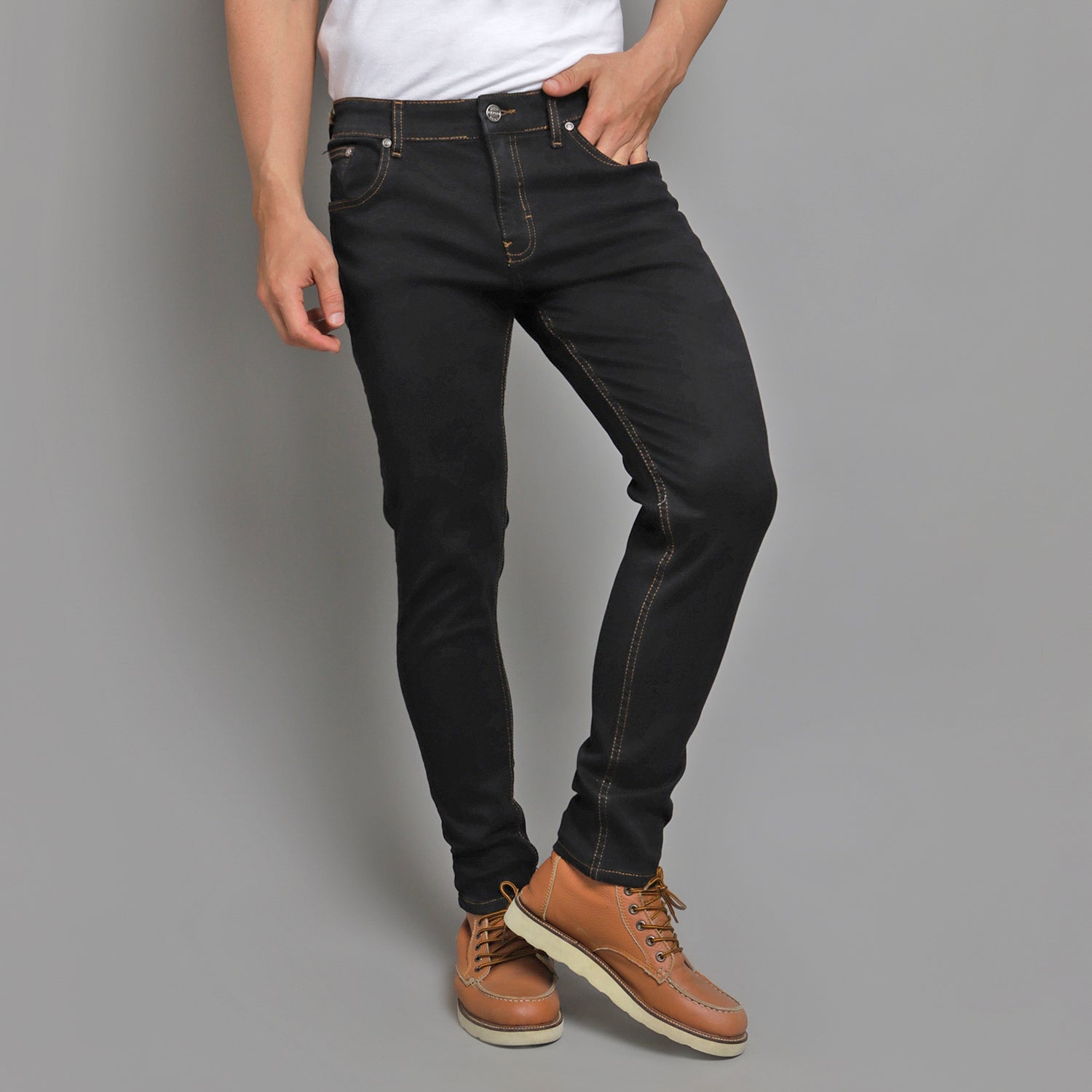 VENGOZ Celana Jeans Skinny Pria Premium - Solid Black Gold Stitch - 30