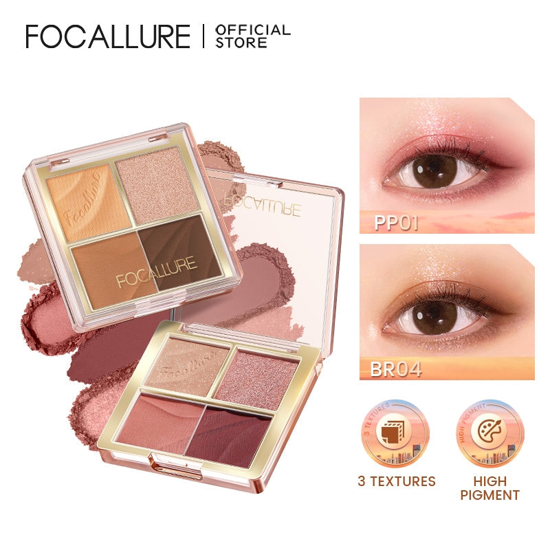 FOCALLURE Shimmer Eyeshadow Palette 4 Shades High Pigment #AmberGold