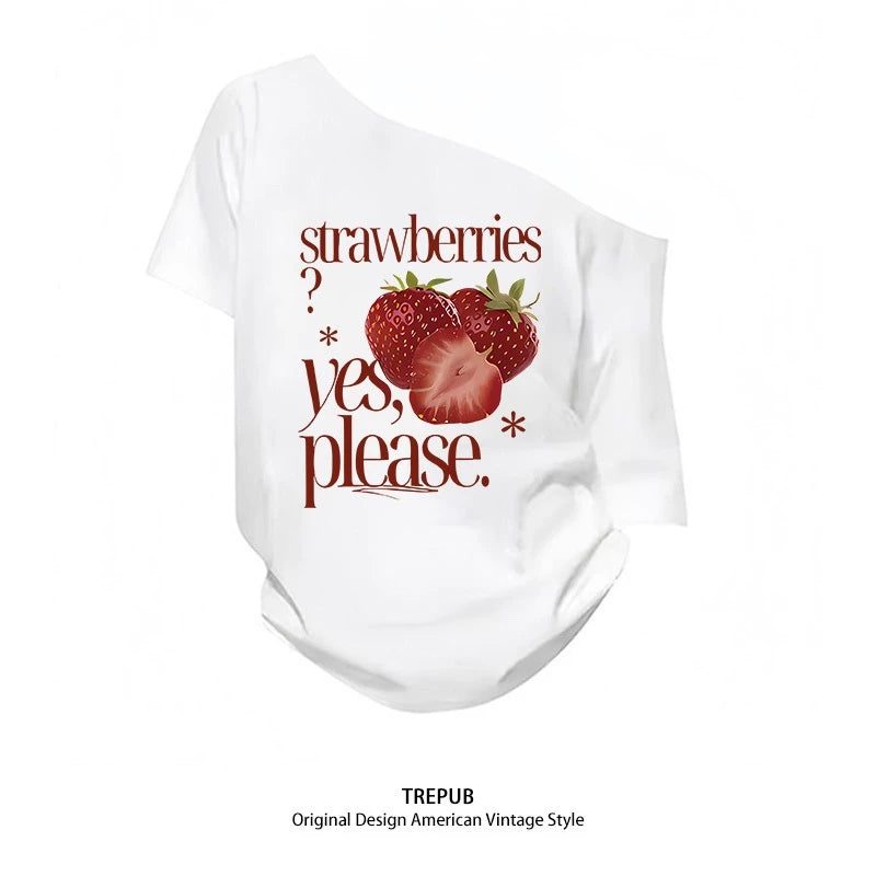 Sabrina T-shirt Oversize Red strawberries Baju Kaos Korean Style | Pria Wanita /379