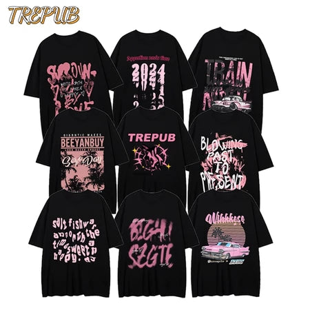 T-shirt Oversize Pink Ink Letters Baju Kaos Korean Style | Pria Wanita /149