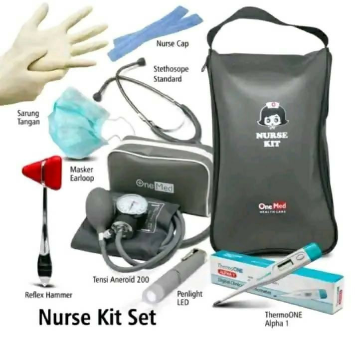 Nursing kit ready, iha kor matak, pink, metan no Silver ba estudante saude.iha 11 item inklui antiseptik ho celemek