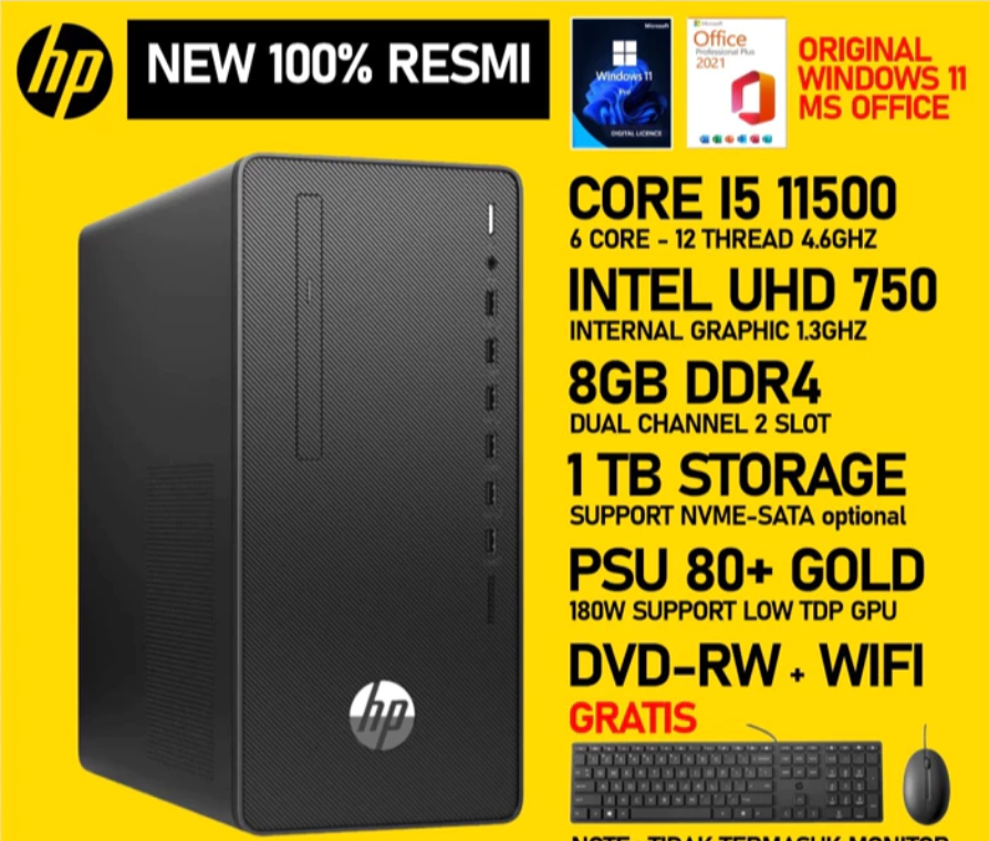 HP 280 Pro G8 Microtower PC BUILT UP CORE I5 11500 8GB DDR4 1TB HARDISK WINDOWS