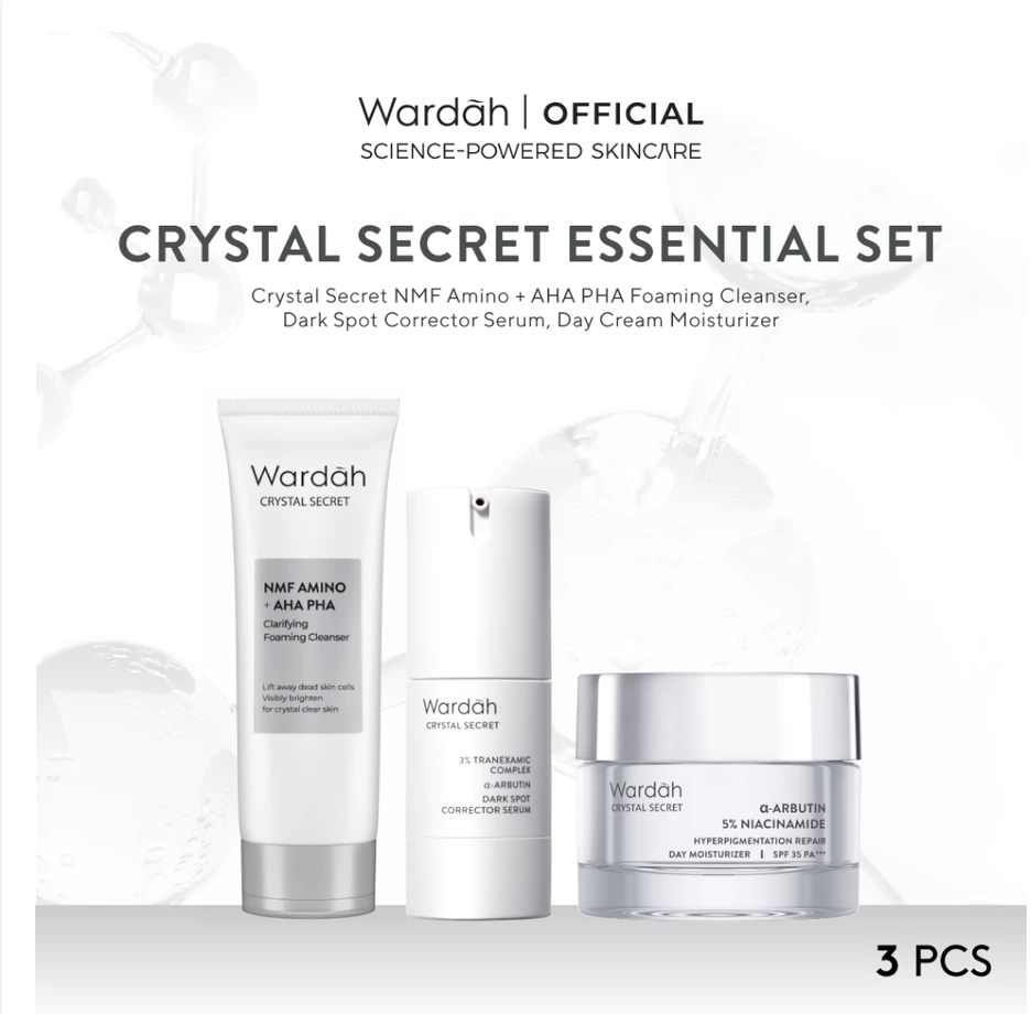 Wardah Crystal Secret Essential Package (Cleanser 100 ml, Serum 20 ml, Day Cream 30 g) - Rangkaian Skincare Untuk Mencerahkan