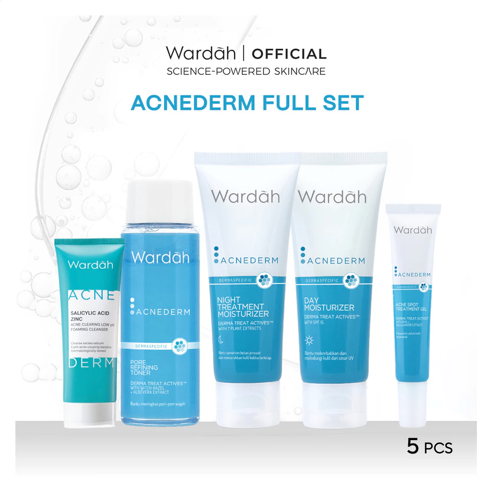 Wardah Acnederm Paket Lengkap Full Regime (Acne Spot Gel, Night Moisturizer, Toner, Day Moisturizer, Foaming Cleanser)