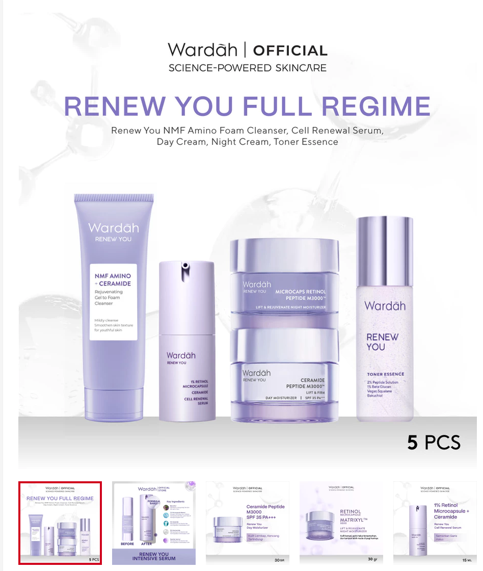 Wardah Renew You Paket Lengkap Full Regime (Serum, Night Cream, Essence, Day Cream, Facial Wash)