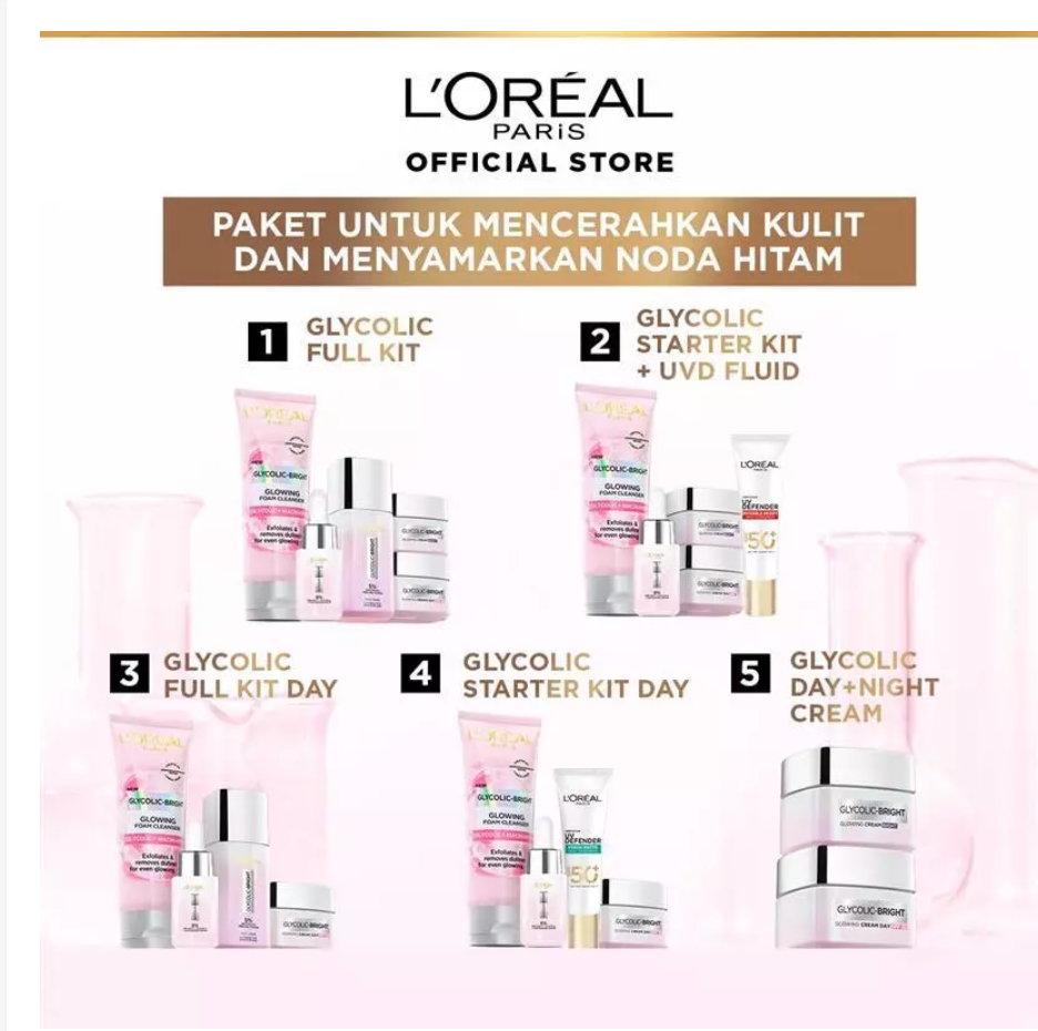 L'Oreal Paris Glycolic Bright Kit - Paket Mencerahkan Kulit dan Menyamarkan Noda Hitam