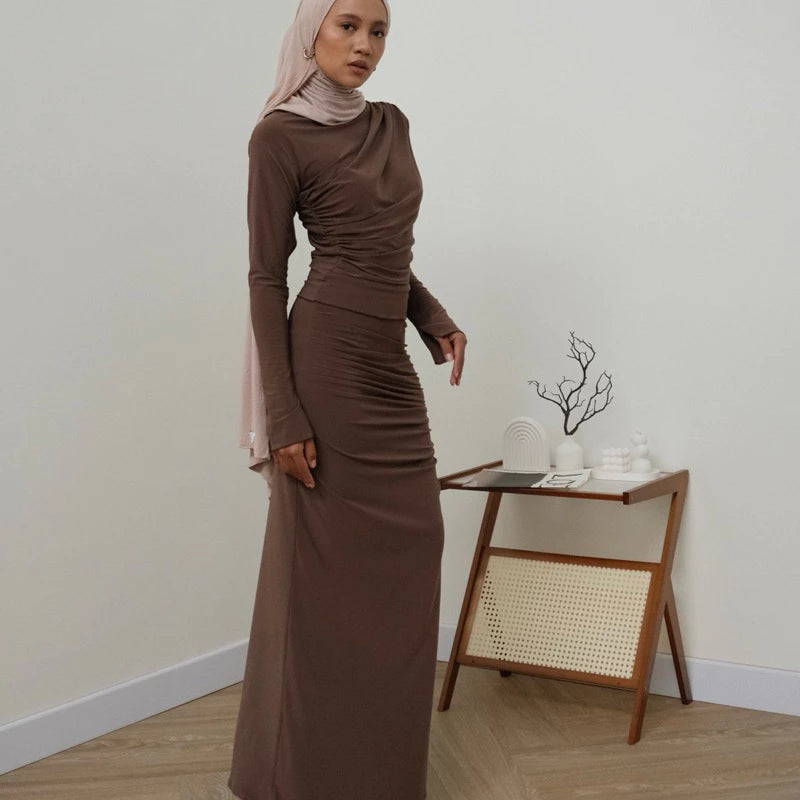 ELEVENBASIC - SARAH SET | ONE SET ROK SEMI MERMAID PANJANG | SETELAN LENGAN PANJANG HIJAB WANITA | ATASAN