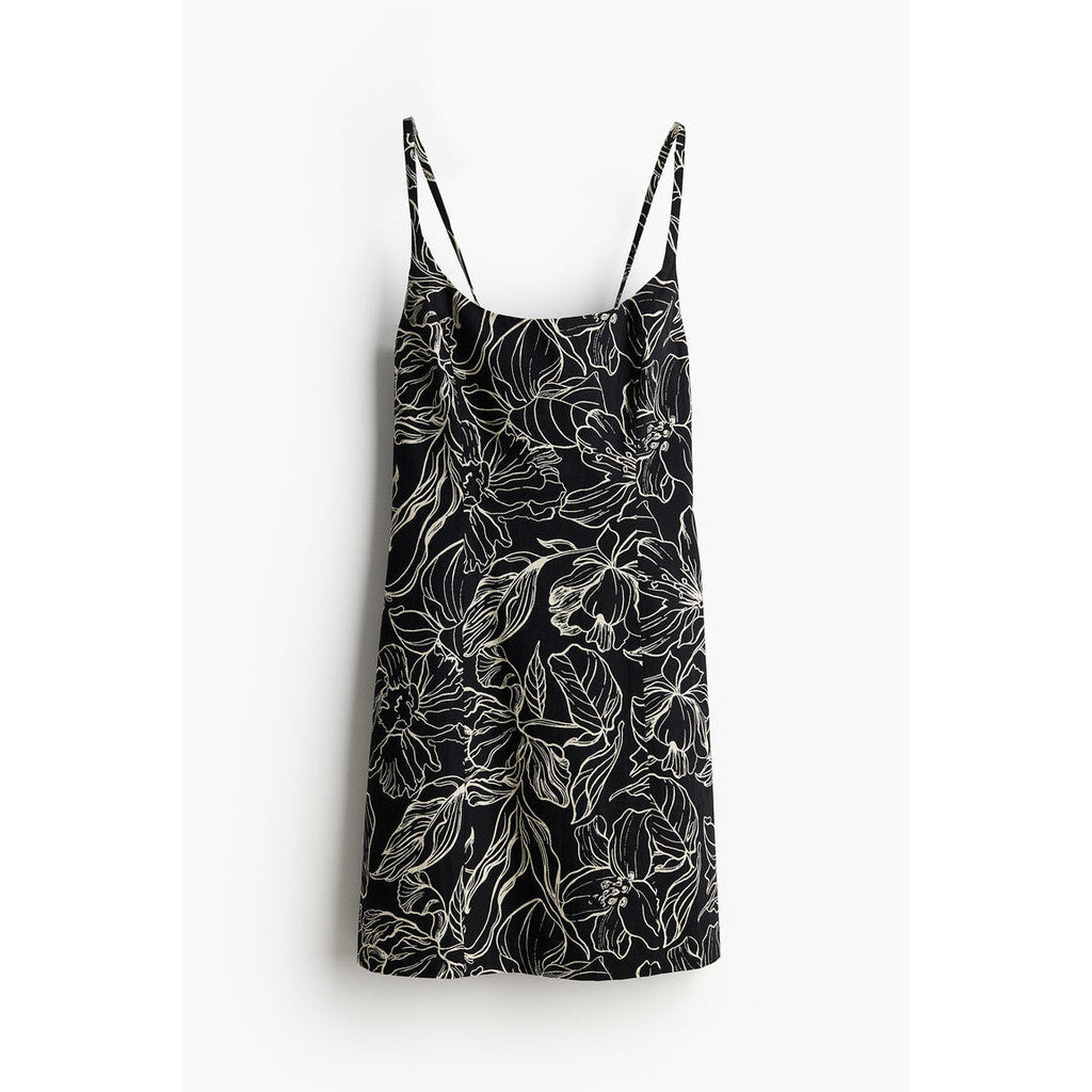 Short, fitted dress in a cotton crêpe weave with a deep, round neckline and narrow shoulder straps that thread through...