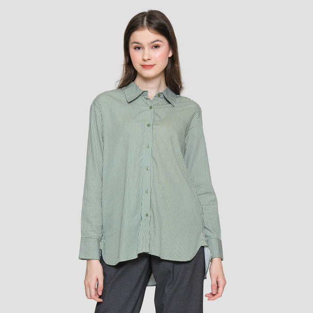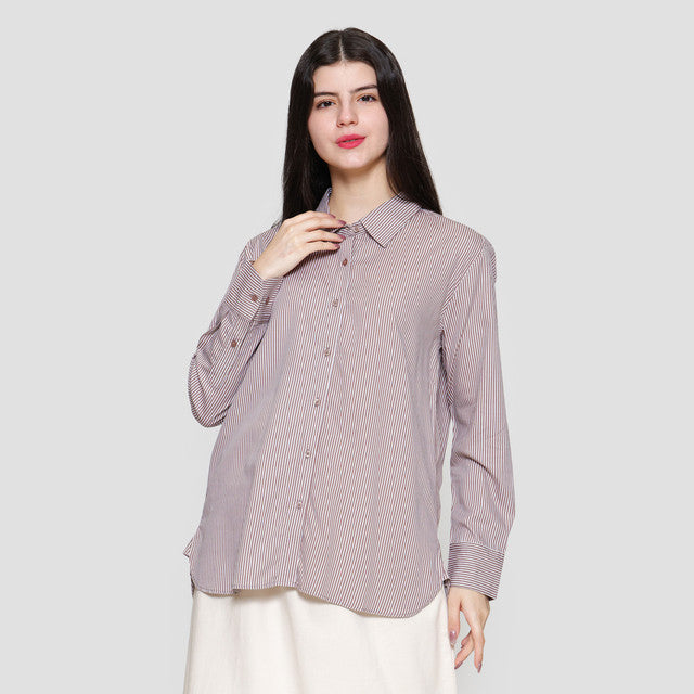 Connexion Basic Print Stripe Kemeja Lengan Wanita 122295704