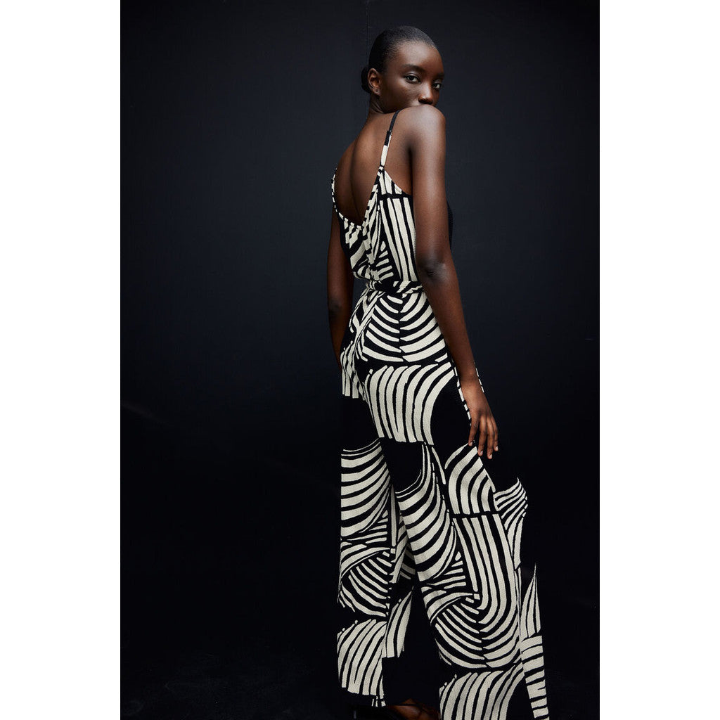 Full-length, wide jumpsuit in textured jersey with narrow shoulder straps and a deep V-shaped neckline at the front and back....