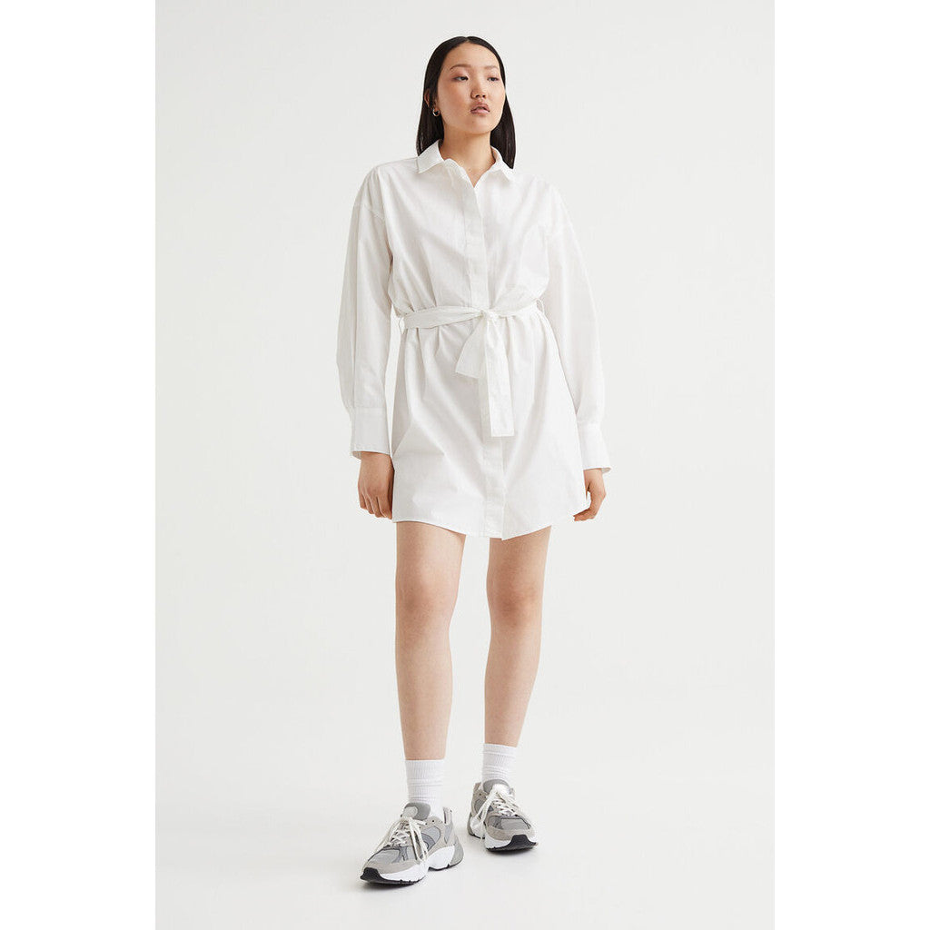 Shirt dress in a cotton weave with a collar, concealed buttons down the front, low dropped shoulders and long sleeves...