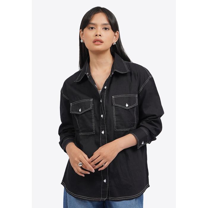 - Blouse Lengan Panjang - Kerah Kemeja - Contrast Stitching Details - Double Buttoned Pocket - Regular - Material: Cotton...
