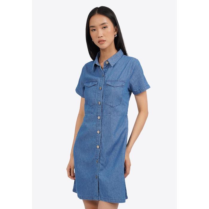 - Mini Dress Lengan Pendek - Kerah Kemeja - Double Front Pocket With Flap - Metal Button Opening - Fitting:...
