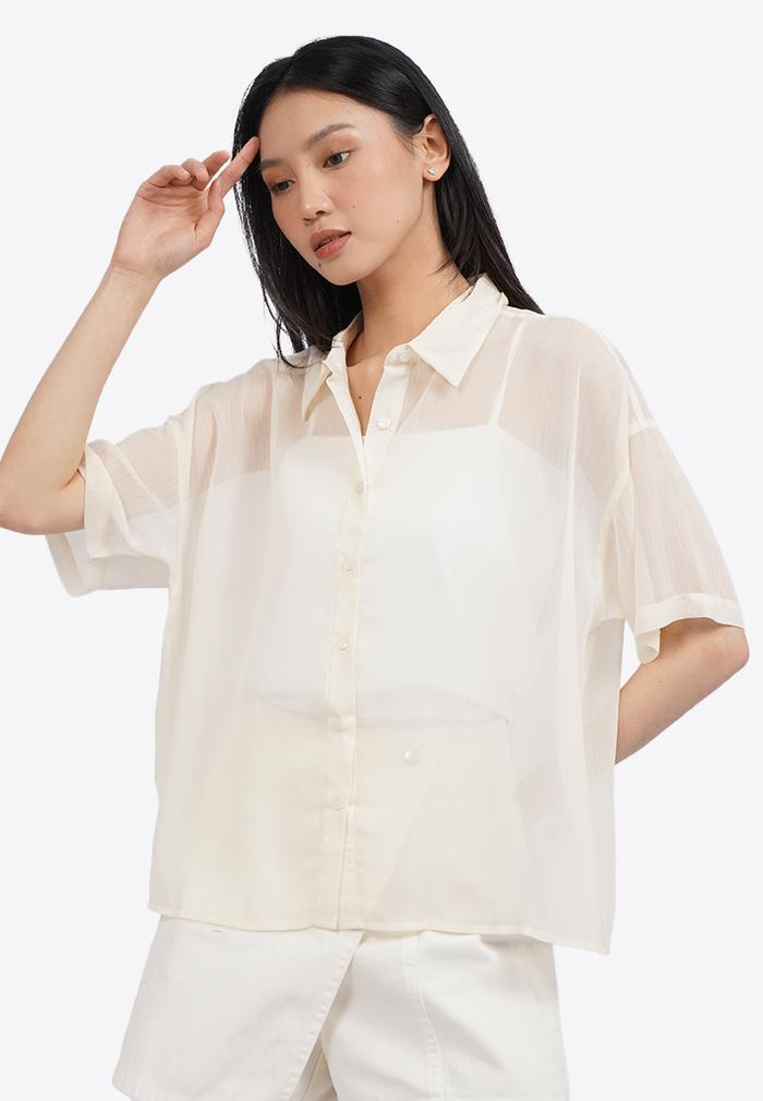 - Blouse Lengan Pendek - Kerah Kemeja - Drop Shoulder - Textured See Through Fabric - Regular - Material: Polyester...