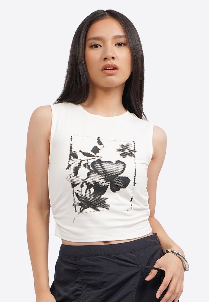 COLORBOX Sleeveless Crop Top with Side Ruched Off White