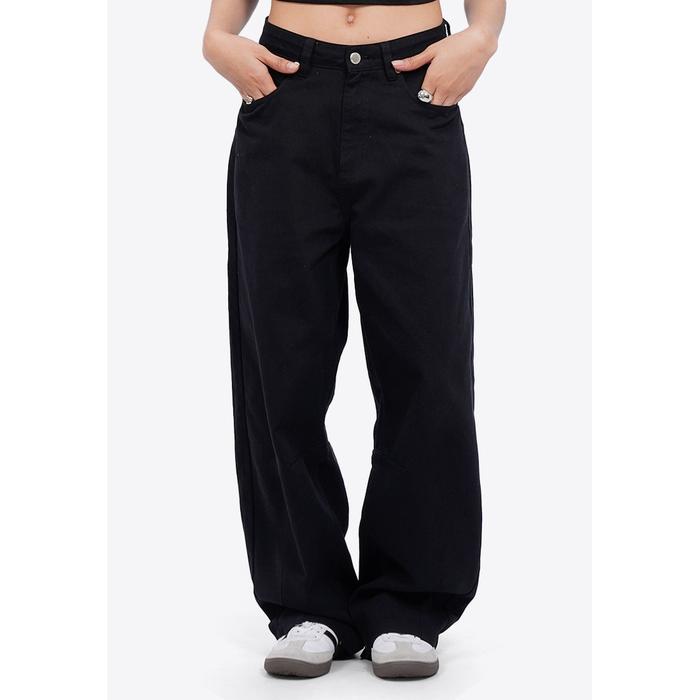 - Celana Panjang Denim - High Waist - Wide Leg - Contrast Metal Button Details - Regular Fit - Material:Denim...