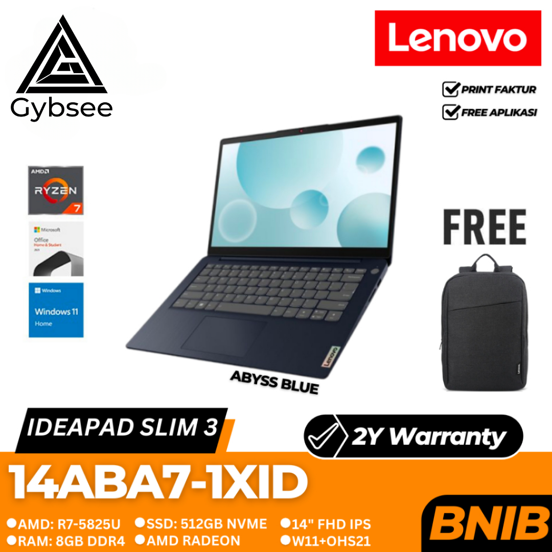 LAPTOP LENOVO IDEAPAD SLIM 3 14ABA7-1XID | R7-5825U 8/512 AMD W11+OHS