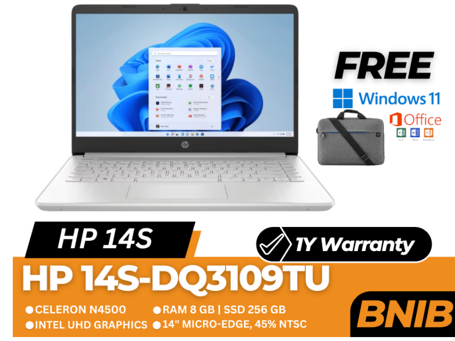 LAPTOP HP 14s-DQ3109TU | CELERON N4500 4/512 UHD 14" HD W11HM+OHS2021