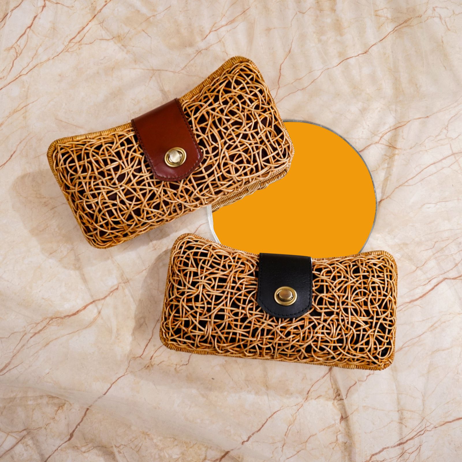 Material : Rattan Mix Authentic Cow Leather Warna : Coklat dan Hitam Original Handmade Rattan Clutch This bag is designed...