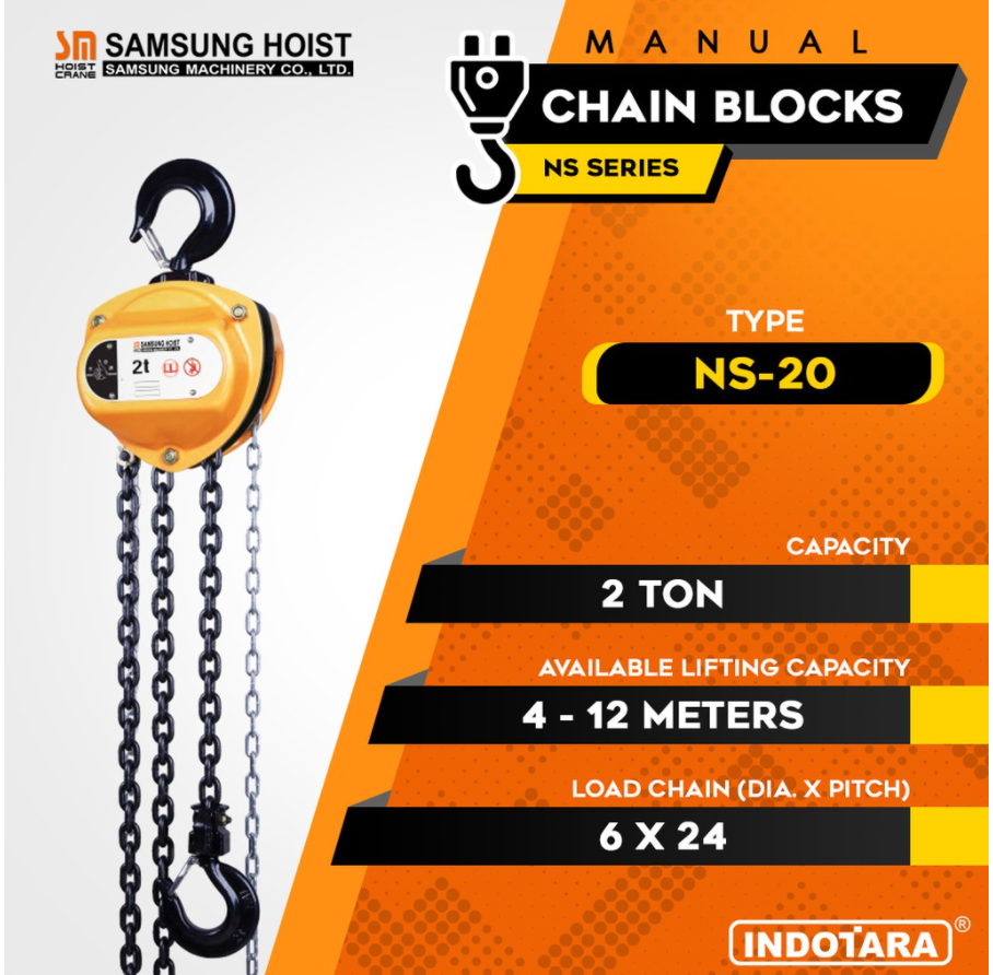 Manual Chain Block Samsung NS-20 Specification: Model : NS-20 Capacity : 2 Ton Standard Lift : 3m 150% Test Load...