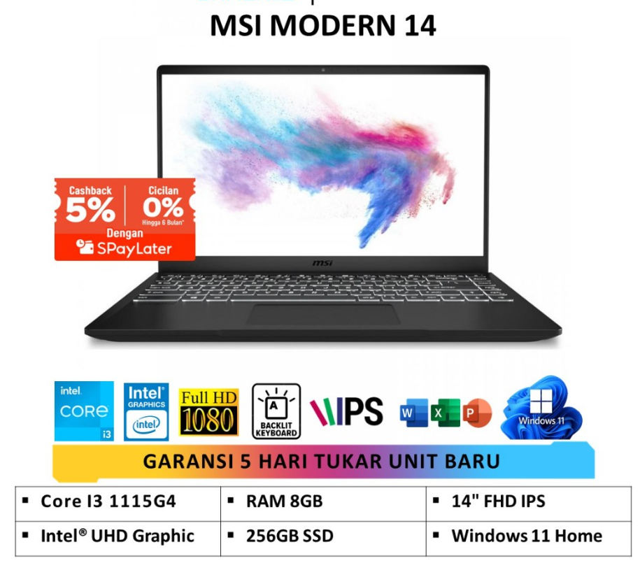 MSI MODERN 14 INTEL I3 1115G4 RAM 8GB 256 SSD WIN11 OHS 14" FHD BACKLIT BLACK