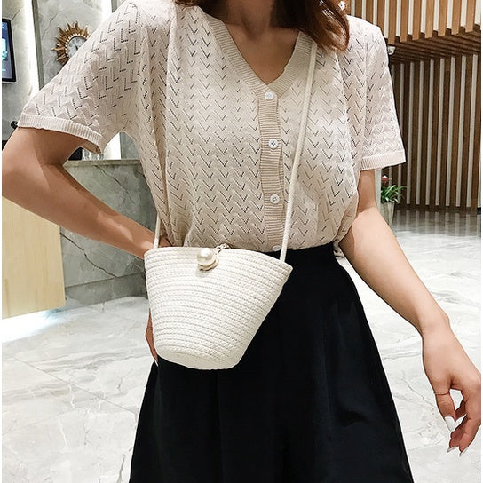 Bahan : Wol Warna : Putih & Khaki Model : Rajut Ukuran : 20x16x9 cm Berat : 216 gram