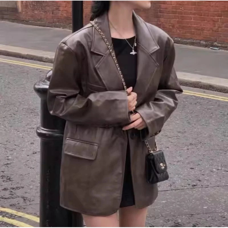 • Blazer Kulit Wanita Autumn American vintage Suit Short coat Women