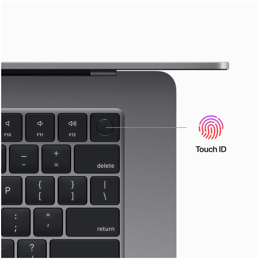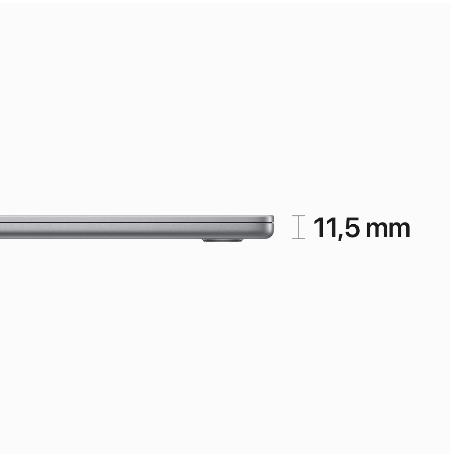 (3) Layar MacBook Air 15 inci memiliki sudut melengkung di bagian atas. Jika diukur sebagai bentuk persegi standar, layarnya berukuran 15,3 inci secara diagonal (area bidang layar berukuran lebih kecil).