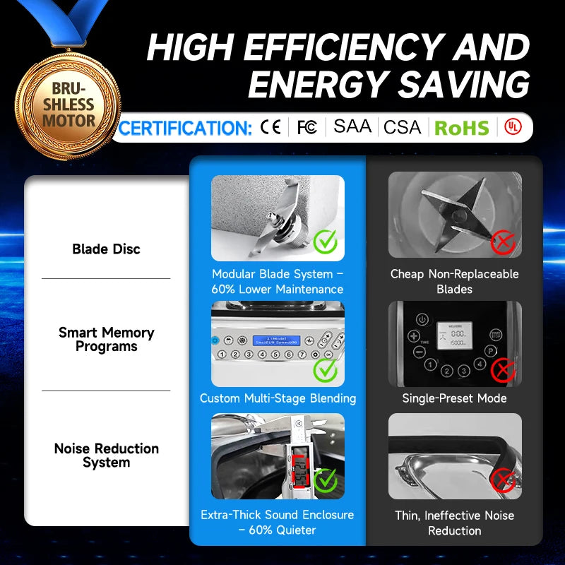 Commercial Stainless Steel 2L Ice Crusher Smoothie Blender Juicer Mixer Functions 1800W Motor 2 Stainless Steel Blades