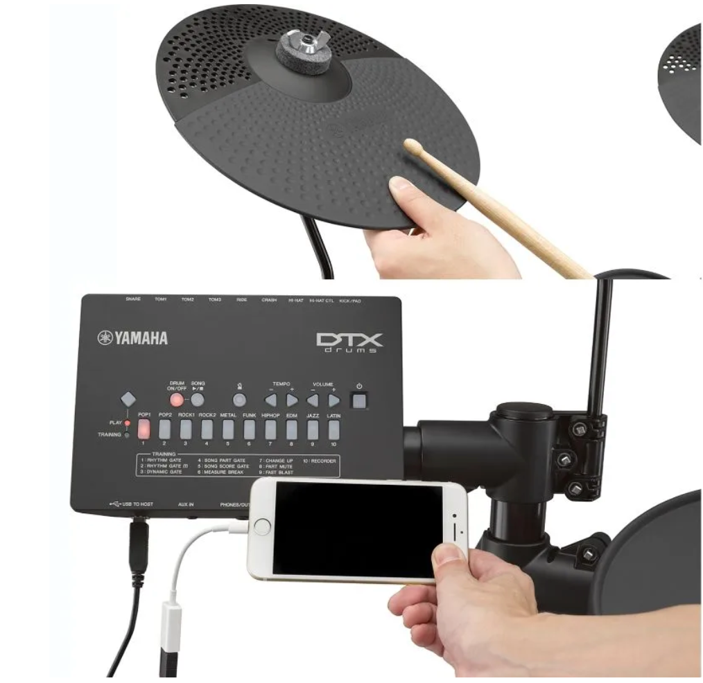 Yamaha DTX402K Elektrik Drum merupakan elektrik drum dengan 10 fungsi pelatihan terintegrasi yang meningkatkan alur dan ekspresi Anda sebagai drummer. Dengan kombinasi pad drum yang baru dikembangkan dengan unit pedal silent kick.
