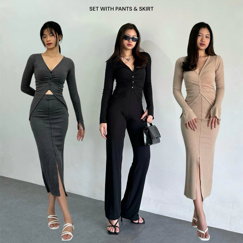 [ELEVENBASIC] HANNA KNIT SET | ONE SET LONG SLEEVE | SETELAN WANITA LENGAN PANJANG ROK & CELANA RAJUT