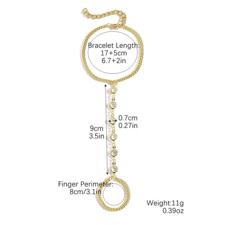 Gelang Jari Terhubung Bertingkat Tiga dengan Kristal dan Manik-Manik Desain Retro Modis Q624
