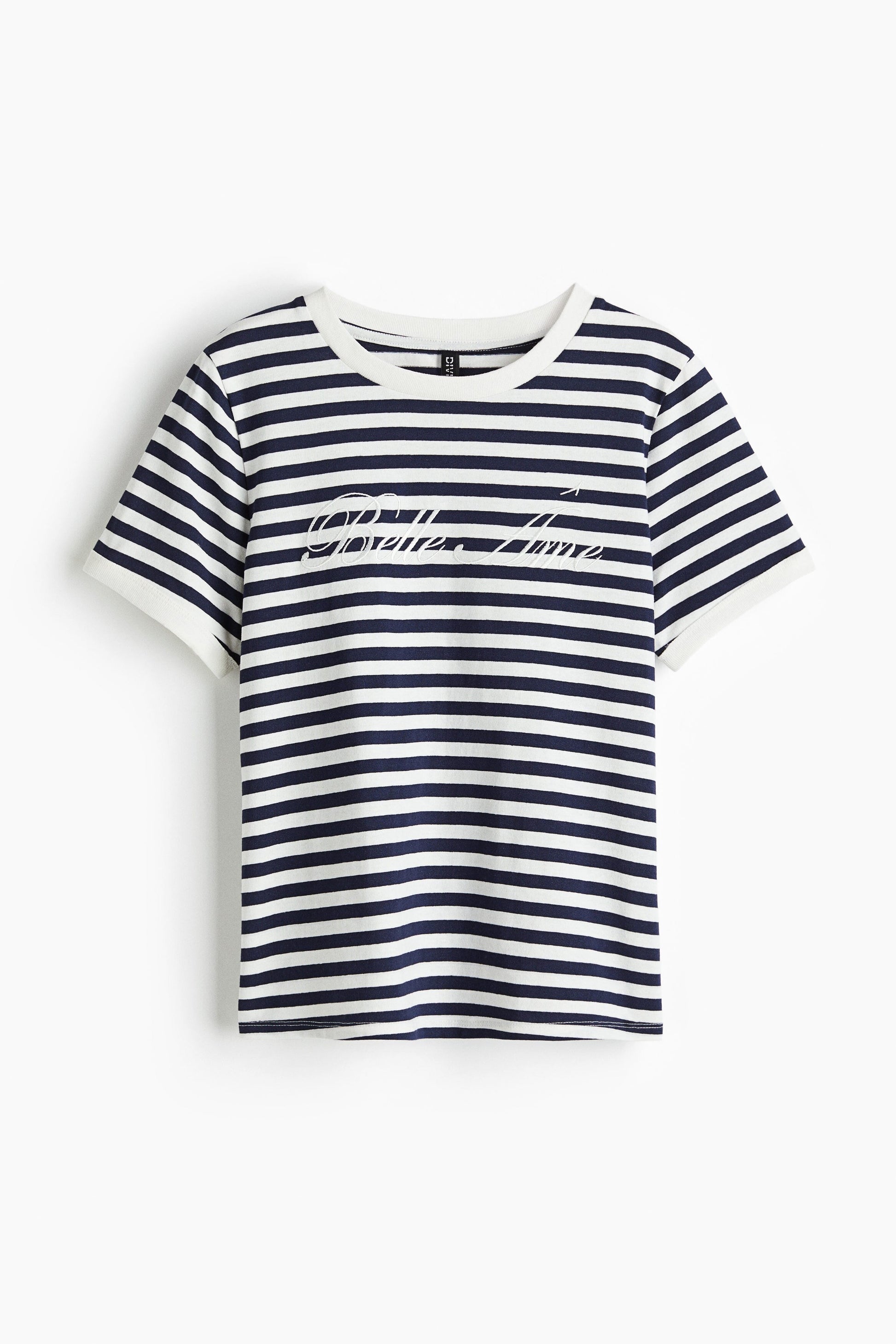 Kaos dalam bahan jersey katun lembut dengan kerah bulat berpinggang rib dan ujung hem lurus.