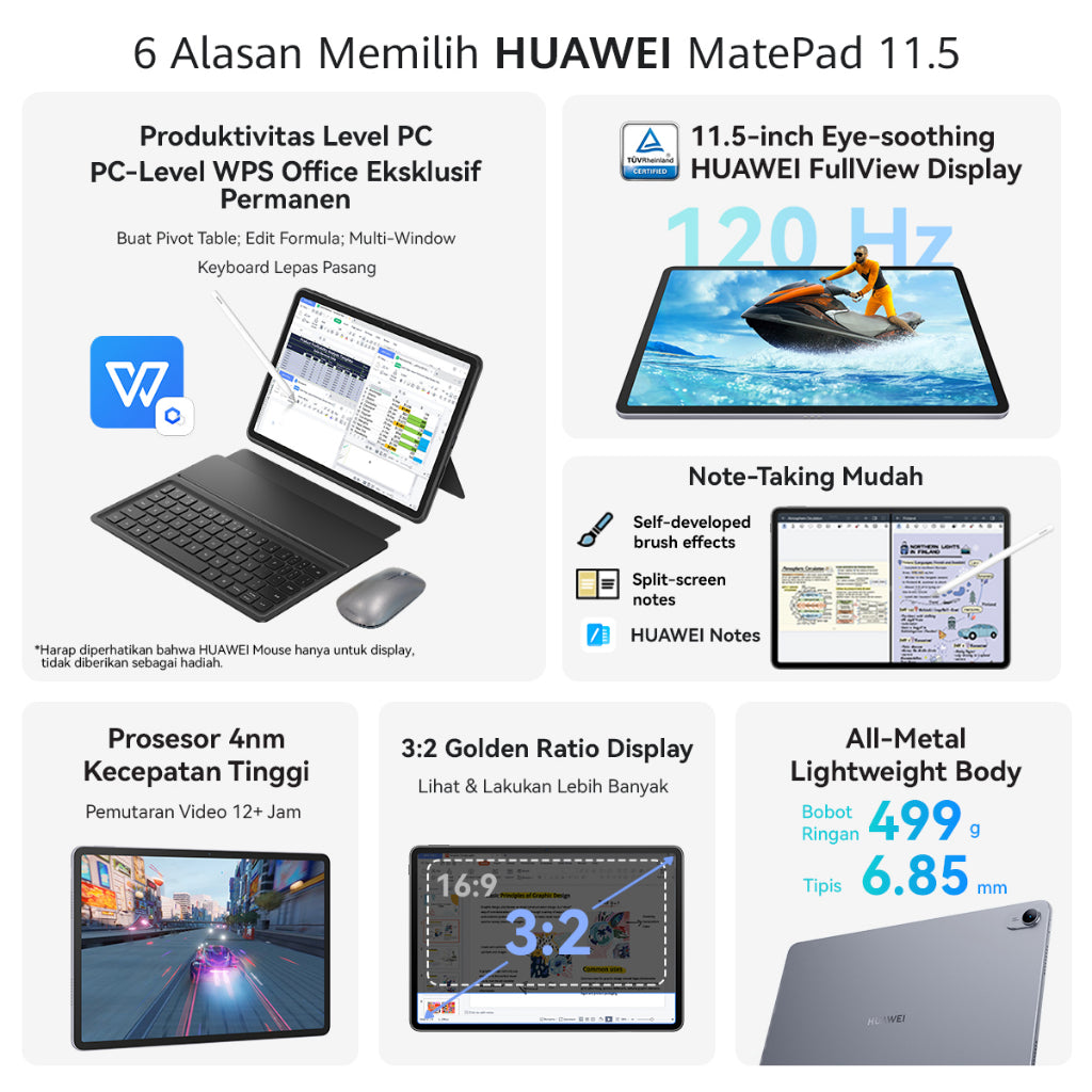 HUAWEI MatePad 11.5" Tablet [6+128GB] | PC-Level Productivity | 120Hz 3:2 Display | Detachable