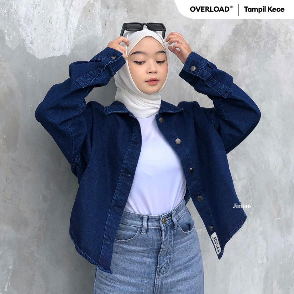 JINISO Jaket Crop Jeans Oversize Belle Basic Blue Black
