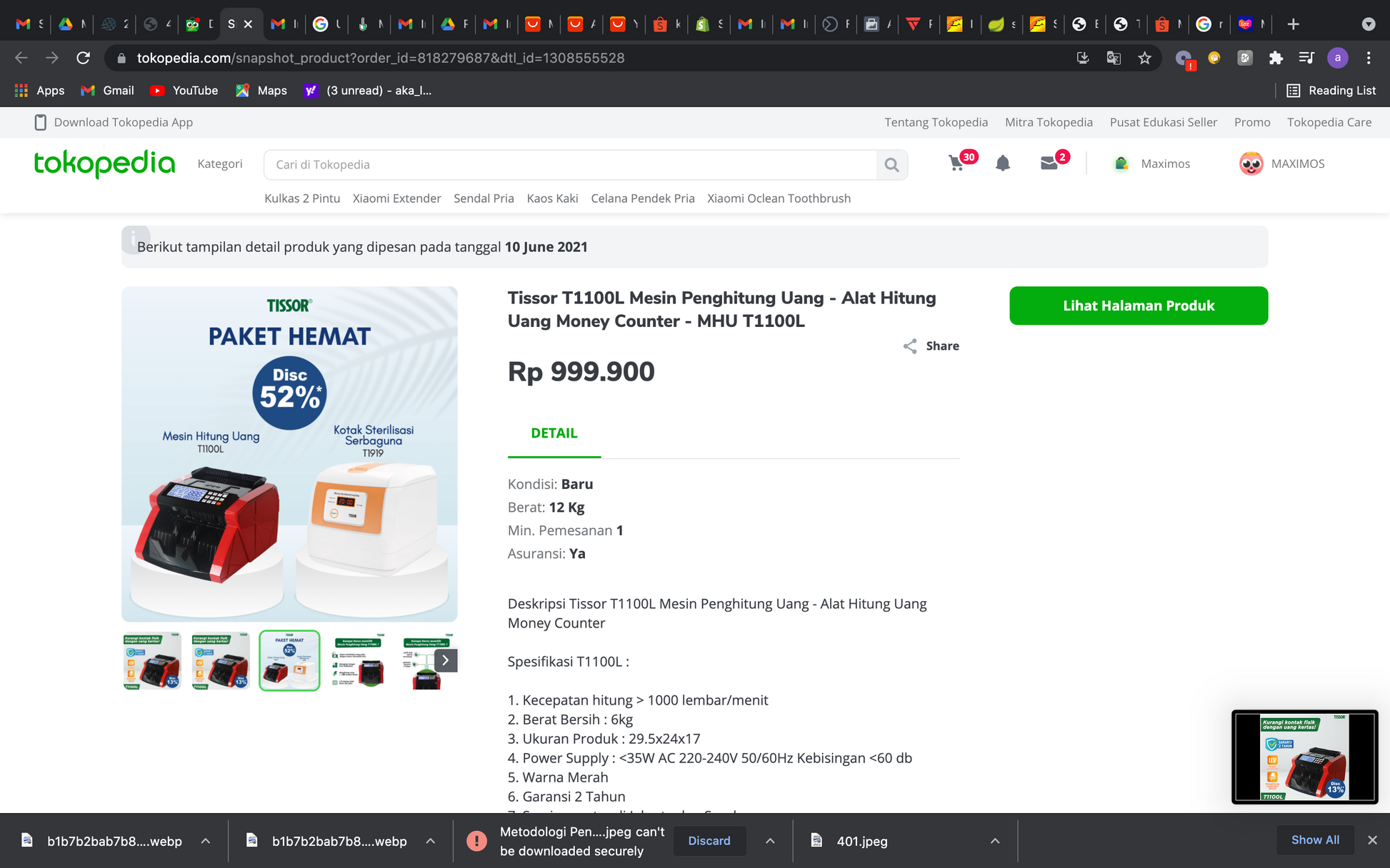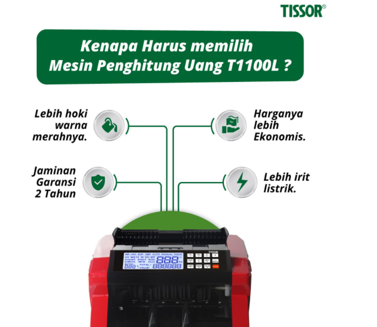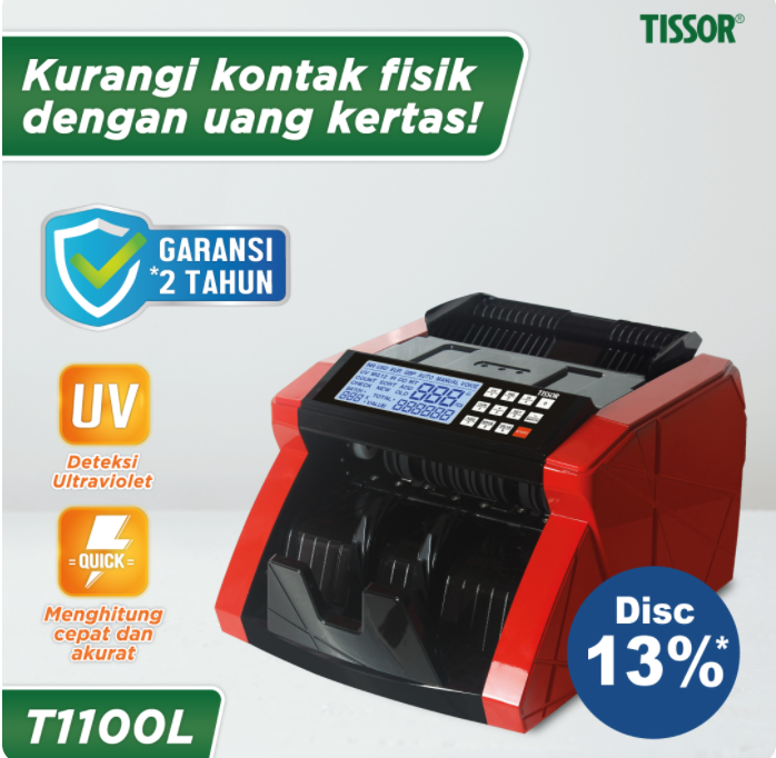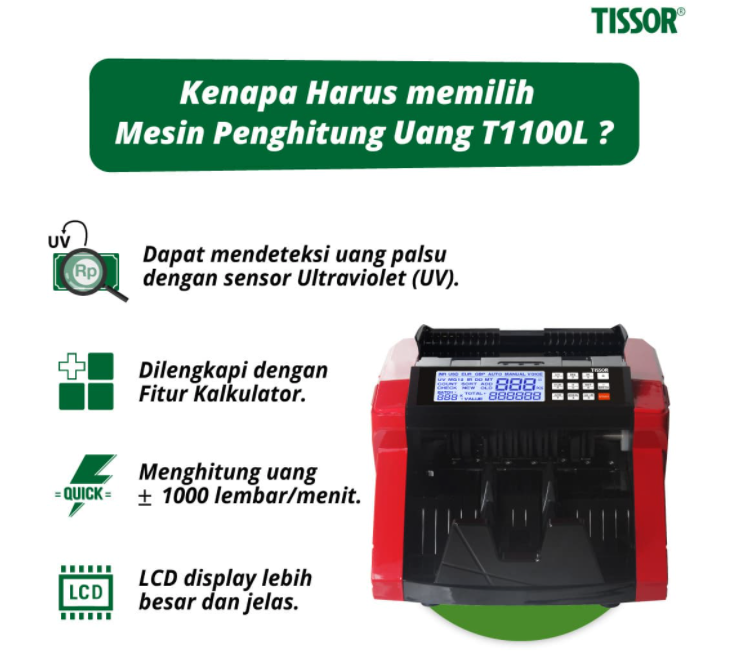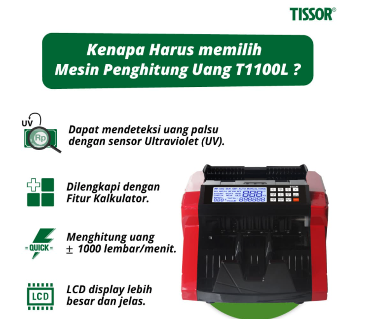 Deskripsi Tissor T1100L Mesin Penghitung Uang - Alat Hitung Uang Money Counter