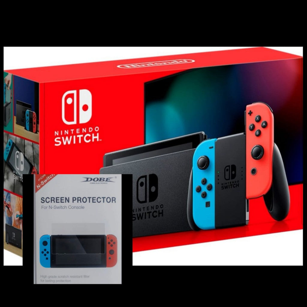 Nintendo Switch V2 Neon Bonus Tempered Glass