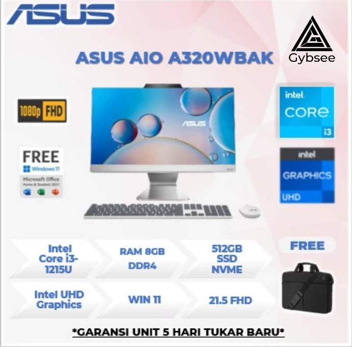 Deskripsi :ASUS AIO A3202WBAK WA382W I3 1215U 8GB 256SSD W11 21.5FHD WHT
