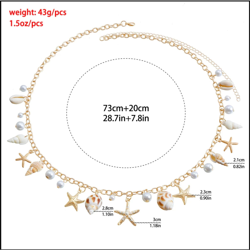Rantai Pinggang Kerang Pantai Dengan Anting-Anting Mutiara Palsu Bintang Laut Dan Siput Rantai Pinggang Rantai Tangan