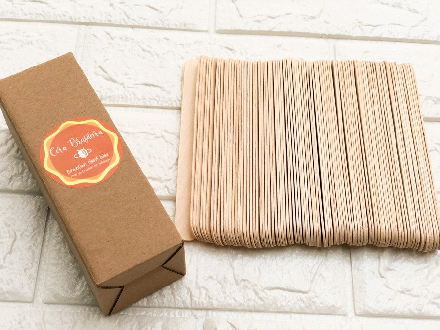 1 box Spatula cera brasileira ekstra yang anda dapat pesan. 1 box berisi 90 buah spatula.